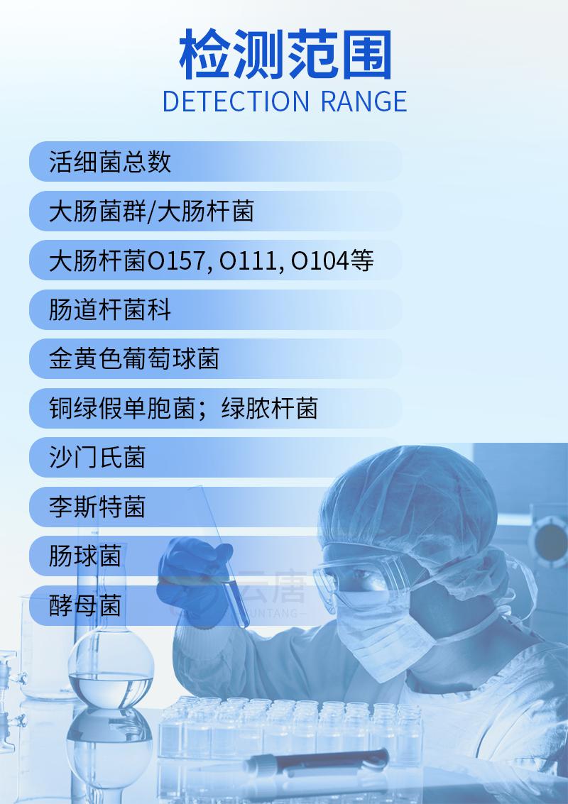 1. 食品:肉類、果蔬、奶制品、主食、調(diào)味料、飲料、半處理類食品以及飲料等,農(nóng)產(chǎn)品及相關(guān)加工公司;2.水質(zhì):生活飲用水、自然界水源、制水廠;3. 表面:潔凈臺、餐具/ 器具表面;4. 其他:藥品、化妝品等;5. HACCP( 危害分析和關(guān)鍵控制點) 診斷,以及適用于災(zāi)難現(xiàn)場、臨場、抽檢、大型會議等微生物安全快速檢測。