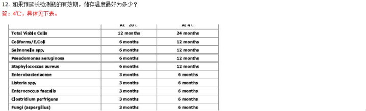 答:對檢測樣本自身的溫度沒有限制,檢測樣本中微生物,請嚴格遵照所檢測微生物對應(yīng)的孵育溫度,依然根據(jù)對照表。