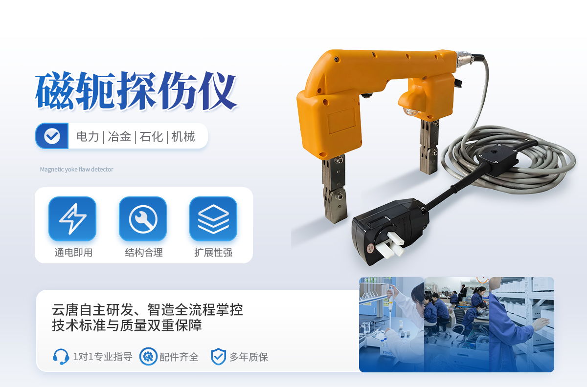 | 1、 無需專用電源主機(jī),電磁軛通電即可使用; | 2、 體積小巧,重量輕; | 3、 開模制作,結(jié)構(gòu)合理,手感舒適; | 4、 磁軛標(biāo)配白光燈,可選熒光燈(不額外加費(fèi)用); | 5、 配專用儀器箱; | 6、 擴(kuò)展性強(qiáng),可根據(jù)需要增配對應(yīng)的專用電池包,通過專用電源來實(shí)現(xiàn)交流、直流磁化功能??蓾M足不方便拖電源線的場所使用。 |