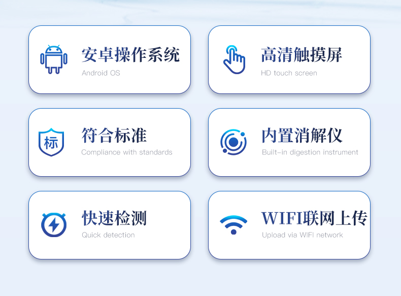 預(yù)設(shè)消解模式:COD、總磷、總氮、高錳酸鹽、硫酸鹽、甲醛;