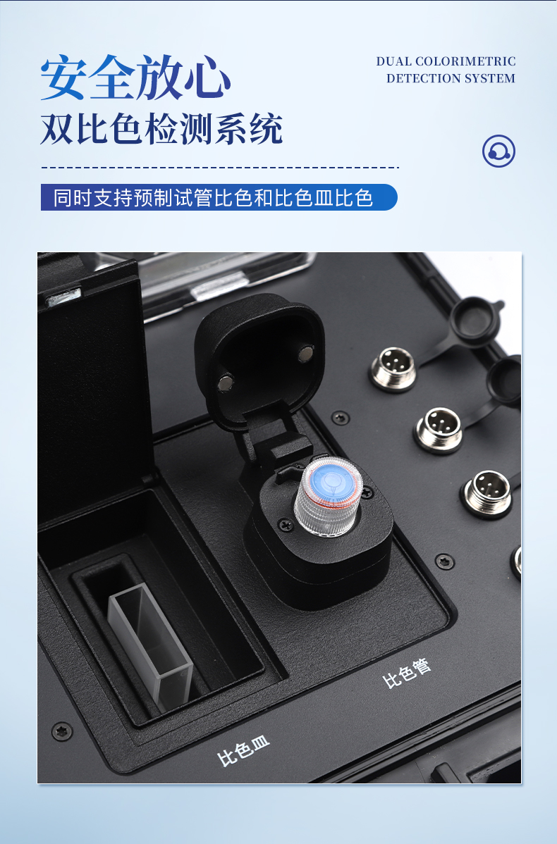 2、雙比色檢測系統(tǒng),同時支持預(yù)制試管比色和比色皿比色;