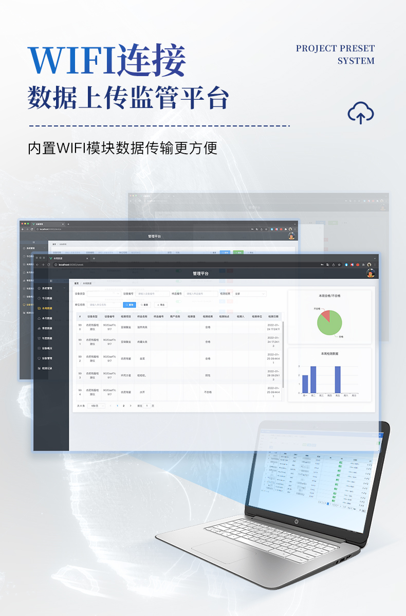 7、儀器具有WIFi無線、4G遠(yuǎn)傳和RJ45有線聯(lián)網(wǎng)功能,將數(shù)據(jù)上傳;