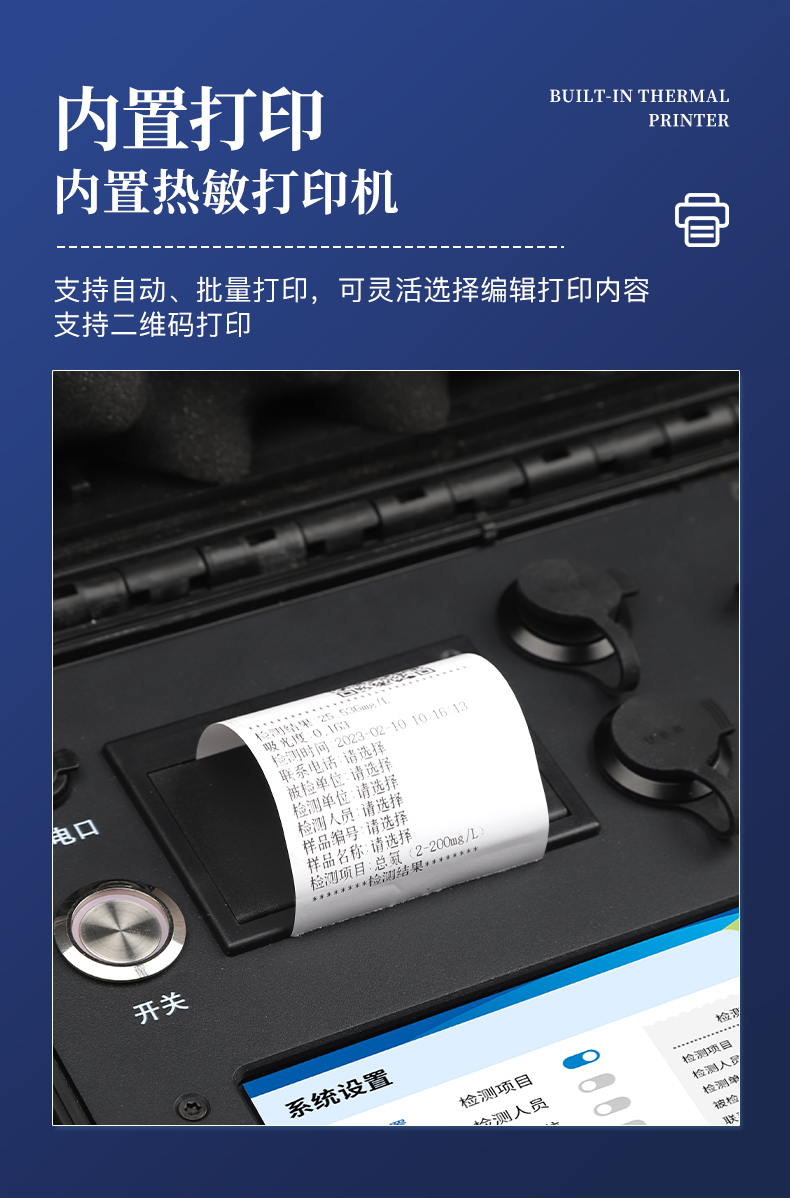 6、內(nèi)置熱敏打印機,支持自動、批量打印,可靈活選擇、編輯打印內(nèi)容,支持二維碼打印。