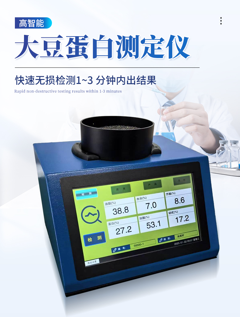簡介:產(chǎn)品介紹:近紅外光譜分析儀,是針對(duì)原糧、食品、飼料等行業(yè)開發(fā)的專用 檢測(cè)設(shè)備,可無損、快速、準(zhǔn)確地檢測(cè)樣本的水分、脂肪、蛋白質(zhì)等多種指標(biāo)。儀器重量輕體積小,既可作為實(shí)驗(yàn)室檢測(cè)儀器,又可攜帶到田間地頭、生產(chǎn)一線實(shí)現(xiàn)快速檢測(cè)。儀器核心采用進(jìn)口高性能光譜分析系統(tǒng),具有體積小、性能優(yōu)、穩(wěn)定性強(qiáng)等特點(diǎn),檢測(cè)精度