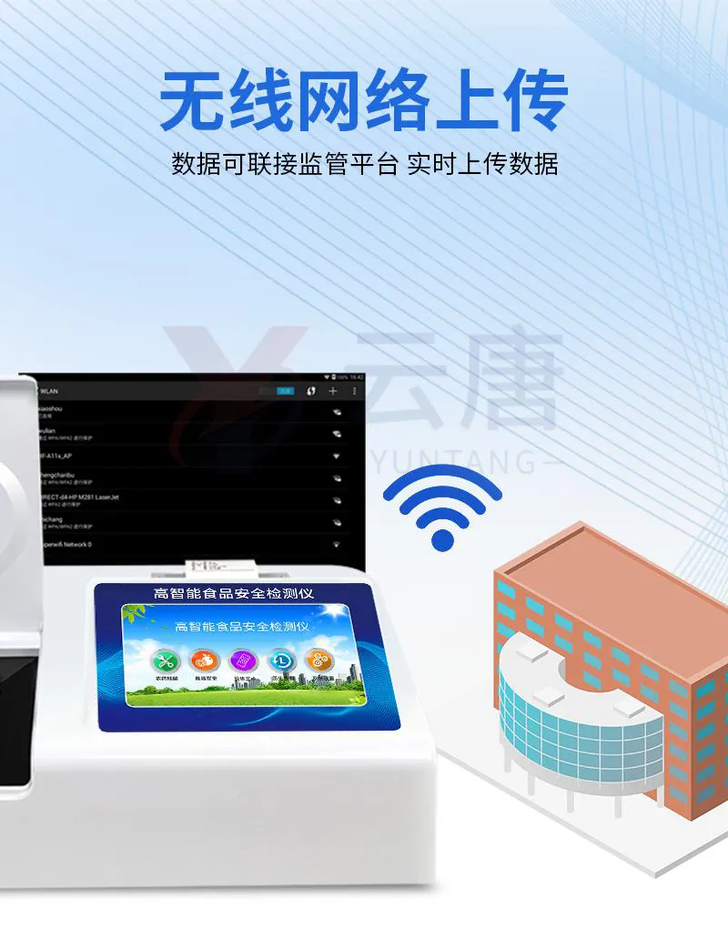 1、儀器采用臺式一體化系統(tǒng)檢測技術,將分光光度模塊、數(shù)字化管理模塊、無線通訊模塊高度集成于一體,支持檢測200種食品安全檢測項目,同時預留升級檢測方法。