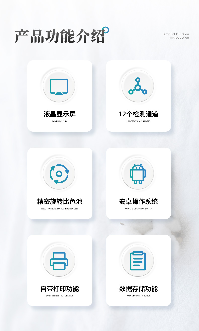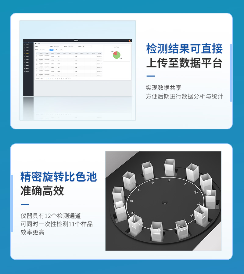 ④ 儀器采用精密旋轉(zhuǎn)比色池設(shè)計,使用同光源校準(zhǔn)精度,檢測結(jié)果更為準(zhǔn)確**。