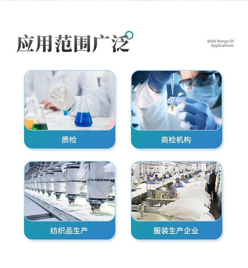 該紡織品甲醛檢測系統(tǒng)與質(zhì)檢、商檢機構(gòu)采用同樣執(zhí)行標(biāo)準(zhǔn)、檢測方法,專業(yè)為廣大紡織品、服裝等生產(chǎn)企業(yè)、質(zhì)檢商檢單位提供“一站式服務(wù)”,同時為各類紡織品甲醛實驗室提供專業(yè)的解決方案。