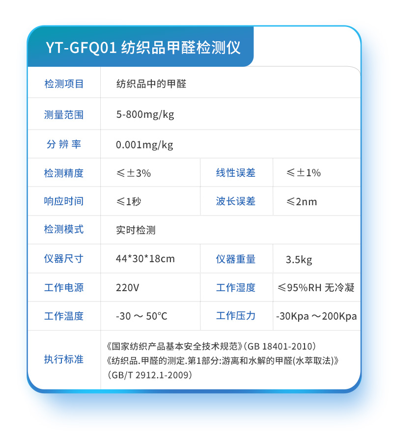 紡織品甲醛檢測儀 YT-FQ01 技術(shù)參數(shù):