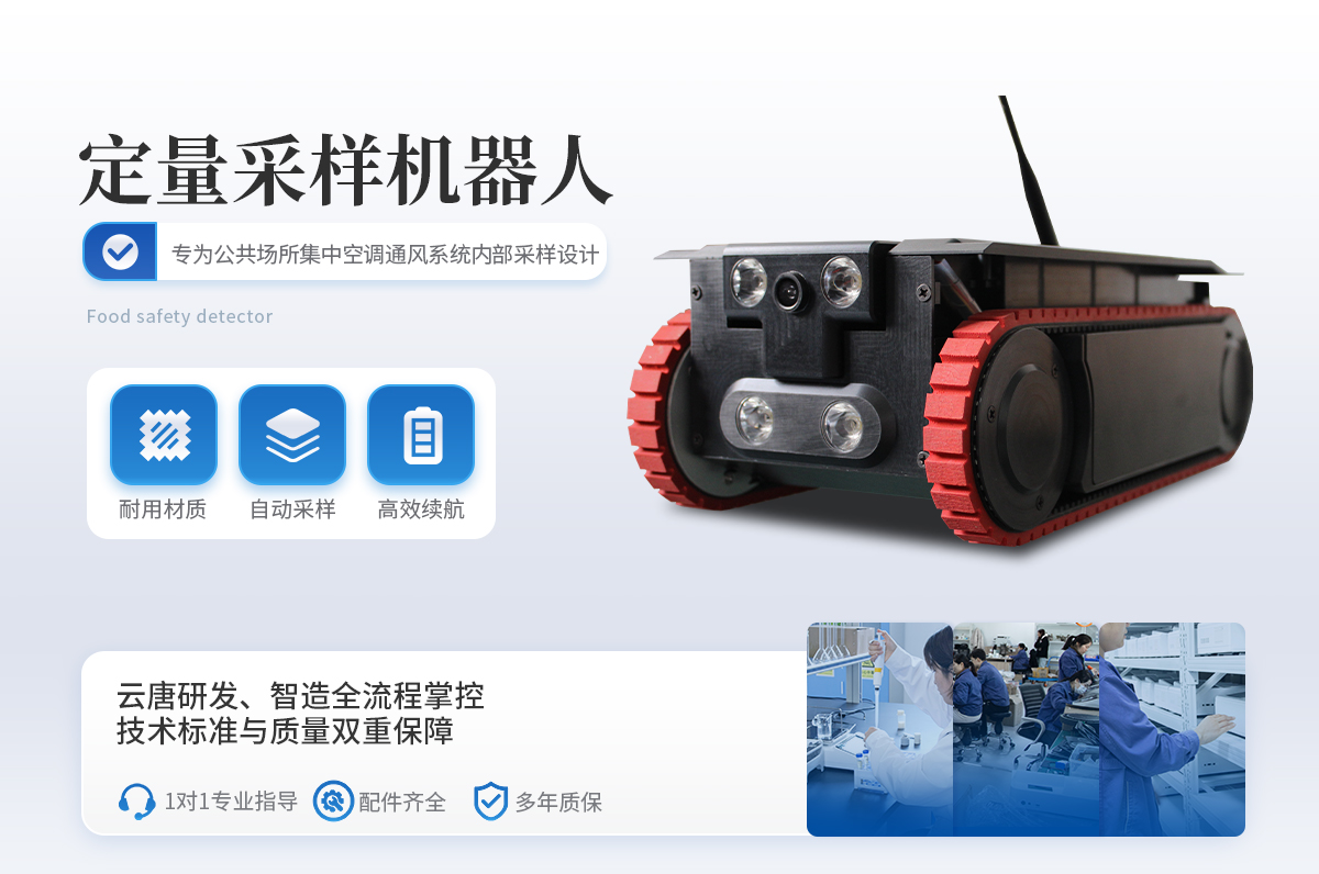 定量采樣機器人是一款專為公共場所集中空調通風系統(tǒng)內部采樣設計的高精度、便攜式智能設備。該產品嚴格按照《WS 10013-2023公共場所集中空調通風系統(tǒng)衛(wèi)生規(guī)范》、《WS/T 10004-2023公共場所集中空調通風系統(tǒng)衛(wèi)生學評價規(guī)范》以及《GB 37488-2019公共場所衛(wèi)生指標及限值要求》中的相關標準進行設計與制造,確保了其在各種工業(yè)環(huán)境下的穩(wěn)定性和可靠性。它采用了**的航空鋁合金材料,結合了**的移動性能與卓越的采樣技術,能夠滿足多種行業(yè)的通風管道檢測和維護工作需求。
