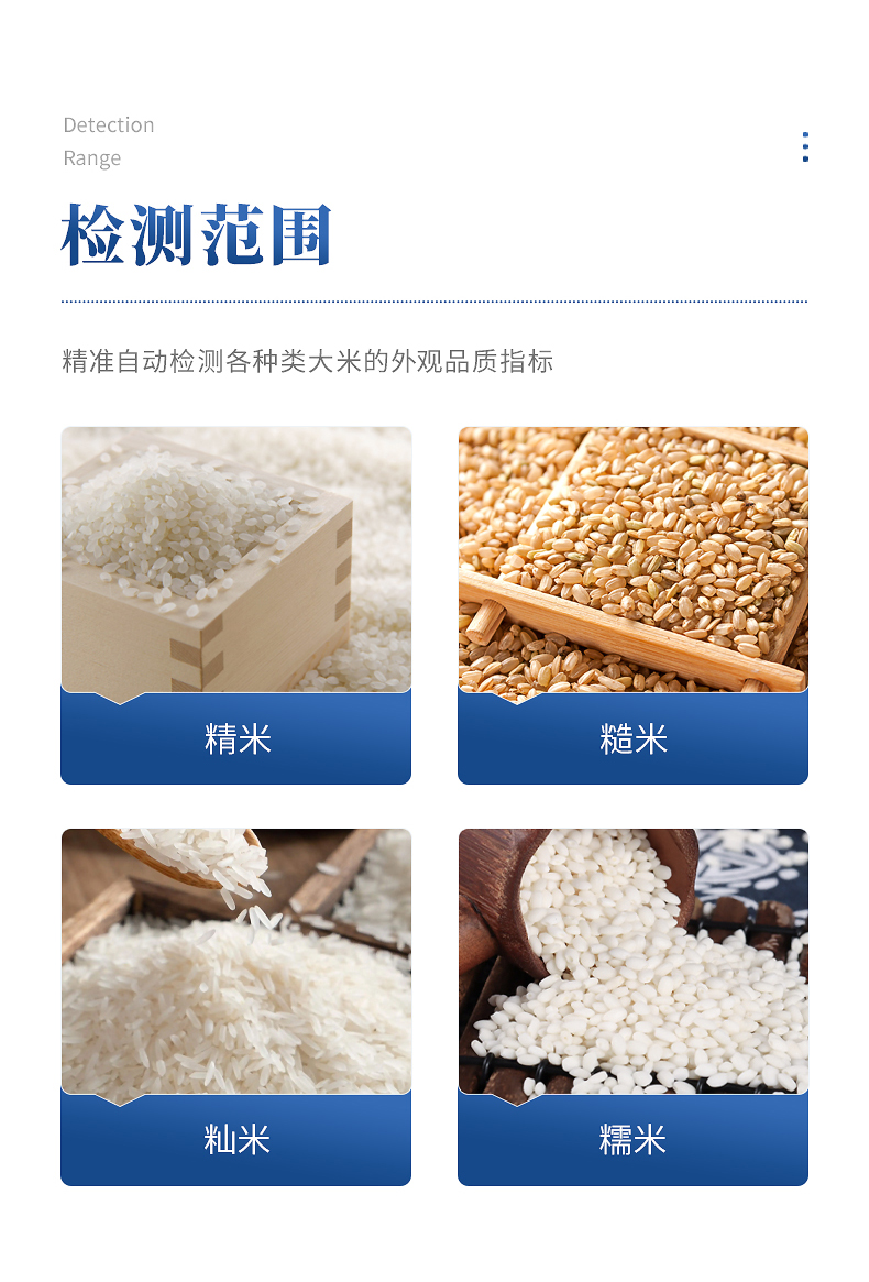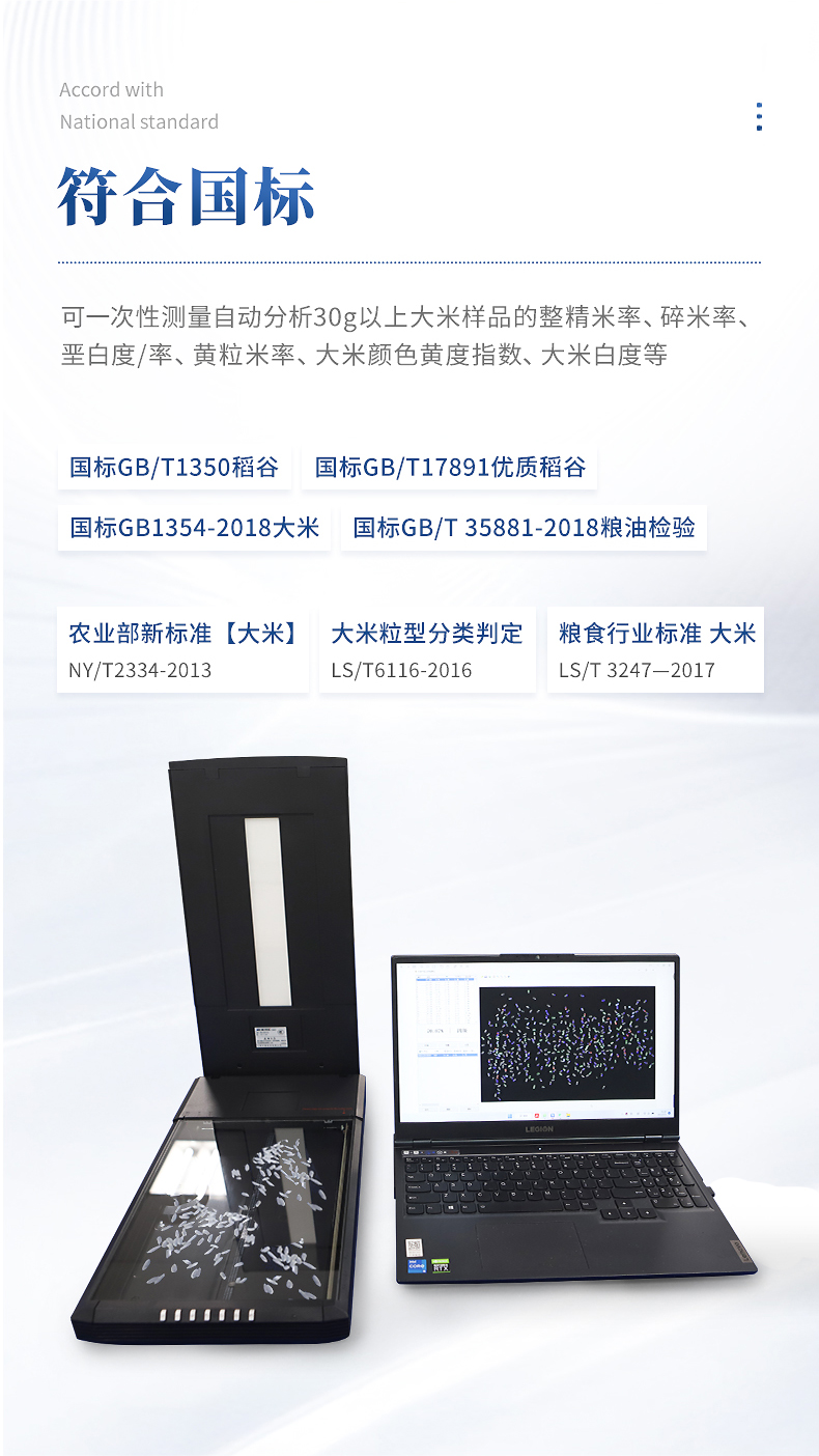 2、★檢測(cè)方法完全符合GB/T 5502-2018《糧油檢驗(yàn) 大米加工精度檢驗(yàn)》、GB 1354-2018《大米》、GB/T5503-2009《碎米》等相關(guān)國(guó)家標(biāo)準(zhǔn)。