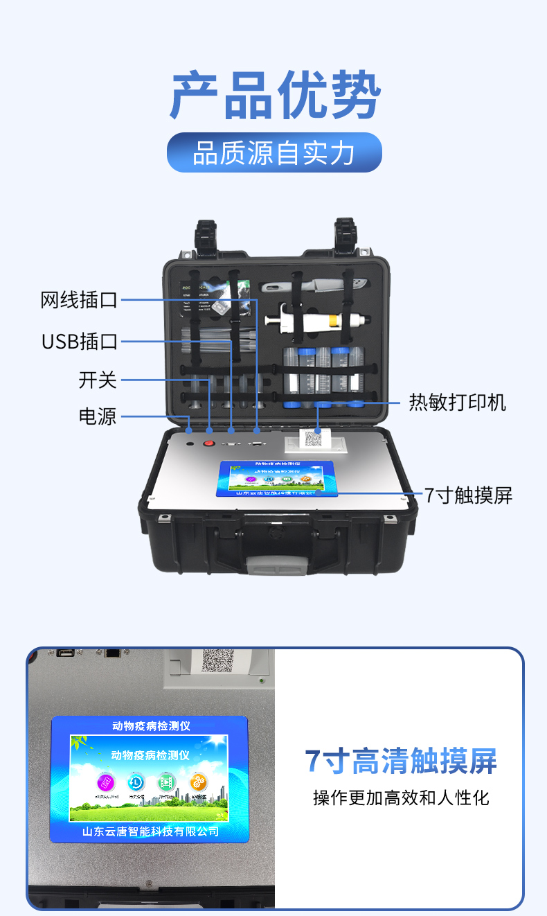 簡介:動物疫病檢測儀器由山東云唐生產(chǎn)研發(fā),設(shè)備檢測快速,檢測準確度高,歡迎新老客戶來電咨詢!