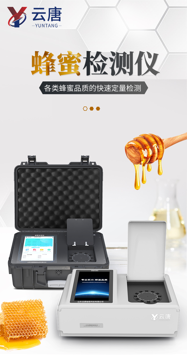 山東云唐智能科技有限公司生產(chǎn)的蜂蜜檢測儀為集成化食品安全快速檢測分析設(shè)備,采用手提箱式一體化設(shè)計,可檢測體現(xiàn)各類蜂蜜品質(zhì)的蔗糖、還原糖(葡萄糖和果糖)、羥甲基糠醛、農(nóng)藥殘留、獸藥殘留、重金屬等項目定性定量檢測。