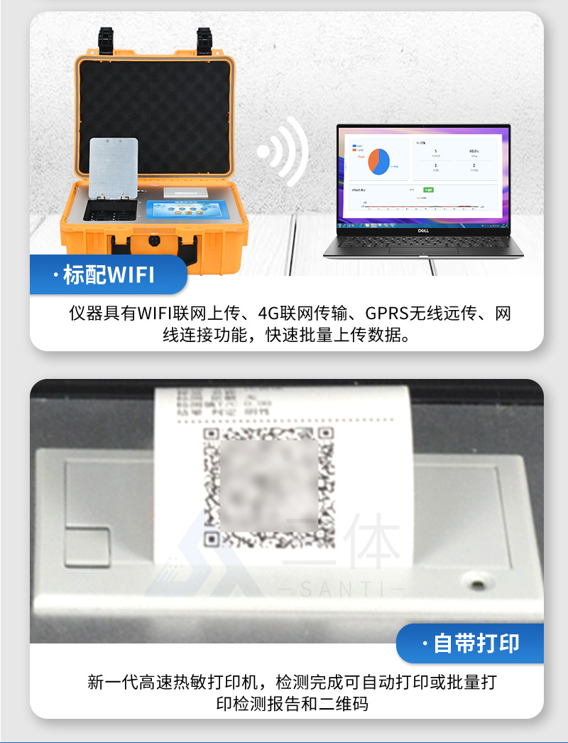 3、新一代高速熱敏打印機,檢測完成可自動打印或批量打印檢測報告和二維碼。