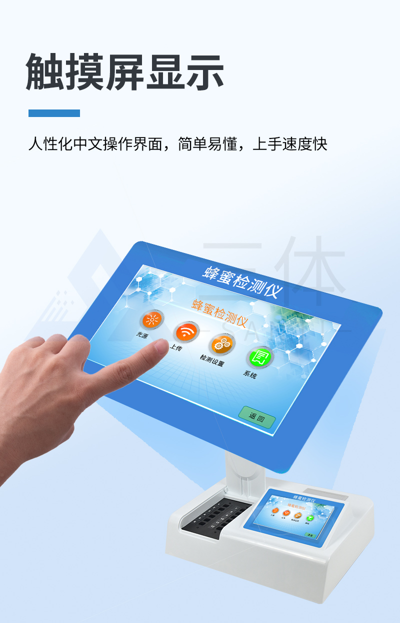 簡介:多功能蜂蜜檢測儀器一體化主機,包含光電比色檢測模塊、膠體金免疫層析檢測模塊。