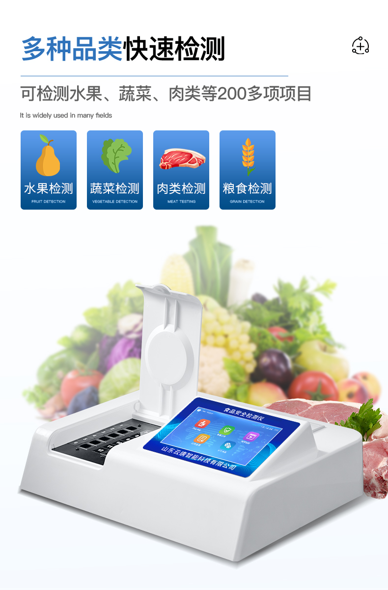 該多功能食品安全檢測(cè)儀為集成一體化食品安全快速檢測(cè)分析設(shè)備,廣泛應(yīng)用于食藥監(jiān)局、衛(wèi)生部門、高教院校、科研院所、農(nóng)業(yè)部門、養(yǎng)殖場(chǎng)、屠宰場(chǎng)、食品肉產(chǎn)品深加工企業(yè)、檢驗(yàn)檢疫部門等單位使用。