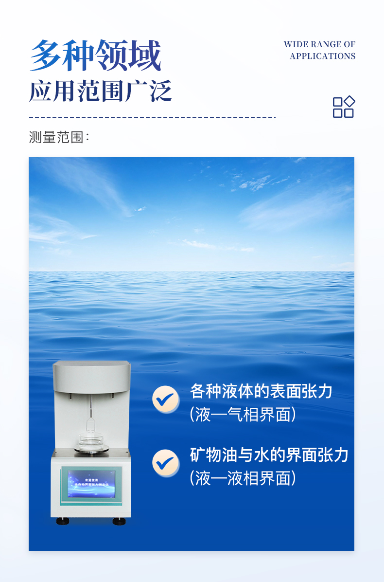 | ★ 測量方法:圓環(huán)法 | ★ 靈 敏 度:0.1mN/m | ★ 測量范圍:2~500mN/m | ★ 準 確 度:±0.4 mN/m | ★ 電 源:AC220V±5% 50Hz±2.5% | ★ 功 率:50W | ★ 環(huán)境溫度: 5℃~40℃ | ★ 環(huán)境濕度: ≤85% |
