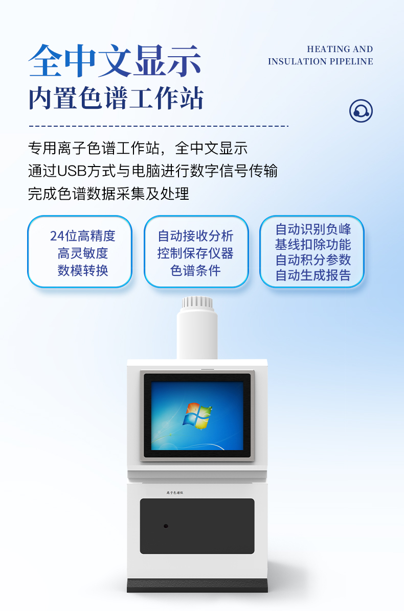 | 全新一代離子色譜儀,采用12.1吋純平工控電腦一體機(jī)設(shè)計(jì)(用戶不需要配電腦),實(shí)時(shí)顯示儀器運(yùn)行參數(shù)和狀態(tài);一鍵啟動(dòng)電動(dòng)閥進(jìn)樣,一鍵完成儀器開關(guān)機(jī)、維護(hù)等操作,一鍵調(diào)閱儀器操作教程,方便快捷。 | 離子色譜儀核心零部件自主研發(fā)、自主知識(shí)產(chǎn)權(quán)可控。采用一體化設(shè)計(jì),集離子色譜主機(jī)、淋洗液發(fā)生器、工控電腦、色譜工作站于一體,結(jié)構(gòu)緊湊,流路*短,對(duì)流路造成的峰型擴(kuò)展有很好的改善。一體化恒溫箱:色譜柱、抑制器、電導(dǎo)池、放大電路都處于同一恒溫系統(tǒng),改善了電導(dǎo)檢測(cè)器的溫飄和基線噪聲。內(nèi)置多處漏液報(bào)警器和缺水報(bào)警器,全方位安全監(jiān)控。由PLC控制的各個(gè)部件統(tǒng)一到電腦顯示屏的集中軟件控制系統(tǒng),操作方便,鼠標(biāo)所見即所控。 |