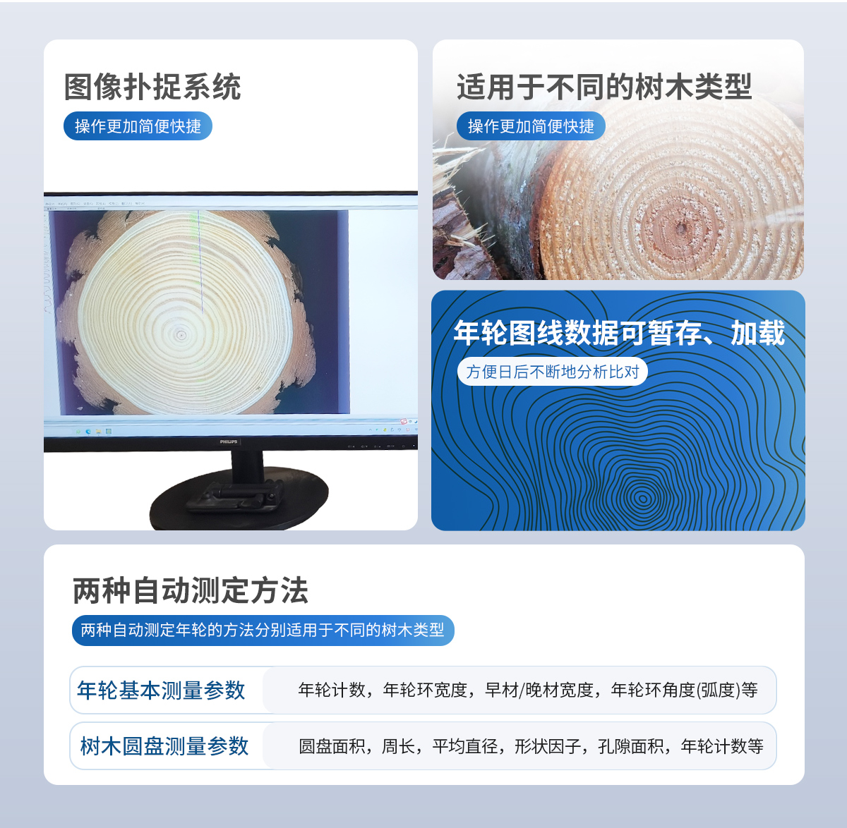 圖像撲捉系統(tǒng):標(biāo)準(zhǔn)年輪樣本掃描設(shè)備,生長(zhǎng)錐定位器等。 A4幅面:掃描面積22×30cm,投影面積20×25cm,分辨率4800DPI,可分辨*小粒子0.005mm A3幅面:超大掃描面積31×44cm,投影面積31×42cm,分辨率2400DPI,可分辨*小粒子0.011mm 年輪分析軟件:標(biāo)準(zhǔn)版分析軟件。