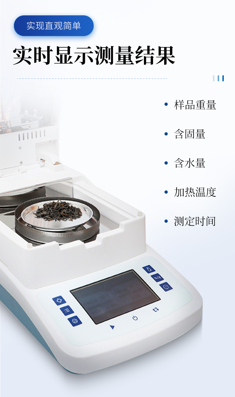 傳統(tǒng)的水分測定一般是采用烘箱干燥法,一個(gè)樣品的測試需要兩三個(gè)甚至三四個(gè)小時(shí),而且還需通過天平稱重、人工計(jì)算,才能得出樣品的水分值(含水率)。烘箱法水分測定的低效率,不能夠適應(yīng)高節(jié)奏的企業(yè)生產(chǎn)需要。幸運(yùn)牌快速水分測定儀采用**率的烘干加熱器-***的環(huán)狀鹵素?zé)簦瑢?duì)樣品進(jìn)行快速、均勻的加熱,樣品的水份持續(xù)不斷的被烘干。整個(gè)測量過程,儀器全自動(dòng)的實(shí)時(shí)顯示測量結(jié)果:樣品重量、含水量、含固量、測定時(shí)間、加熱溫度等。