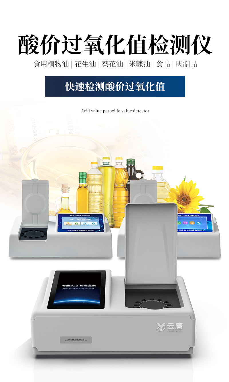 山東云唐智能科技有限公司生產(chǎn)的過氧化值檢測儀為集成化食品安全快速檢測分析設(shè)備,采用臺式一體化設(shè)計,能夠快速檢測食用植物油、食用豬油、花生油、葵花油、米糠油、食品、肉制品中的過氧化值含量;儀器預(yù)留其他項目檢測程序和端口,根據(jù)日后需求可進行遠程升級
