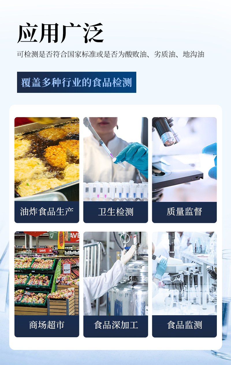 該過氧化值檢測儀為集成化食品安全快速檢測分析設(shè)備,目前已于市場監(jiān)管局、食用油加工企業(yè)、學(xué)校食堂、衛(wèi)生部門、配送中心、商場超市等單位廣泛使用。