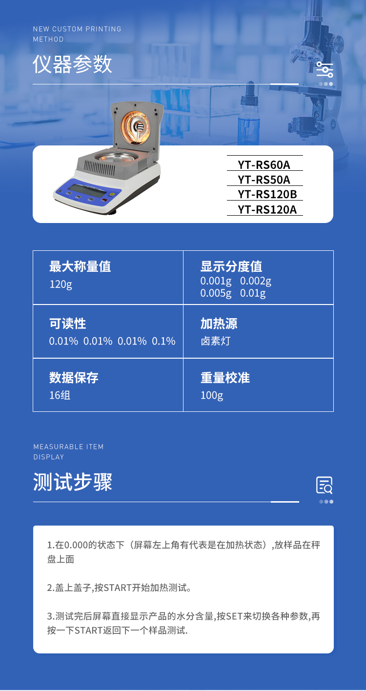鹵素水分測定儀 YT-RS120A 產(chǎn)品詳情: