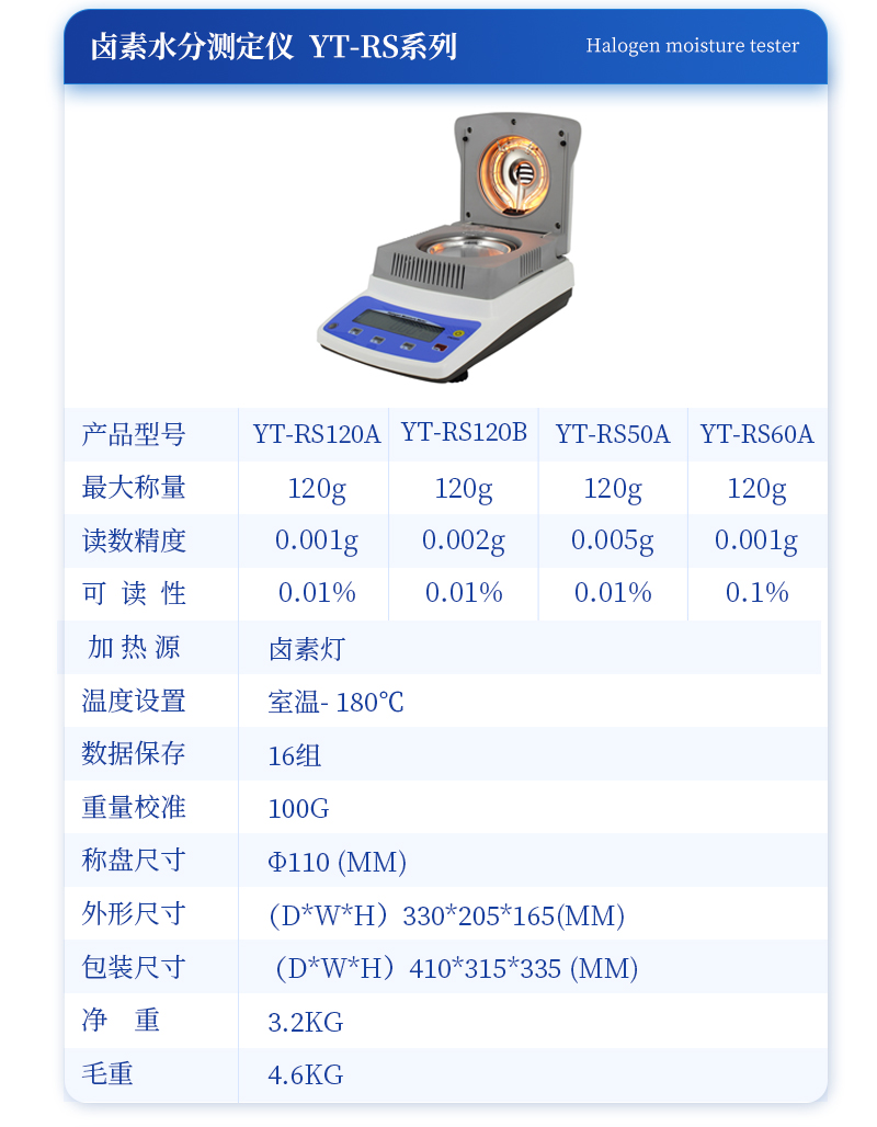 高精度鹵素水分儀 YT-RS100D 產(chǎn)品詳情: