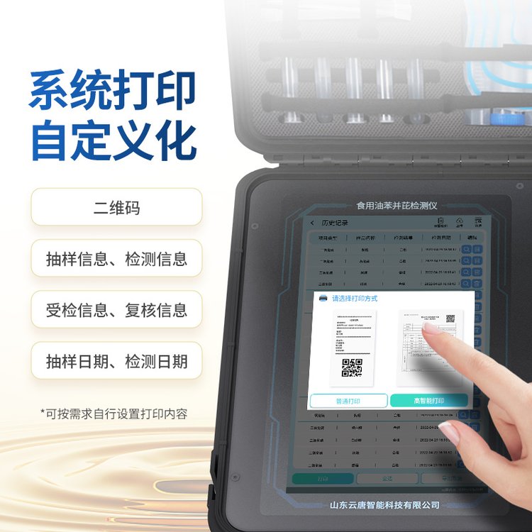 山東云唐智能科技有限公司生產(chǎn)的高智能苯并芘檢測儀可快速檢測食用油、芝麻油中的苯并芘含量是否超標(biāo),通過快速、簡捷、**的處理方法,采用免疫競爭法分析原理,可以確定樣品中是否含有苯并(a)芘,準(zhǔn)確度高,為各行業(yè)的用油安全提供相應(yīng)保障。