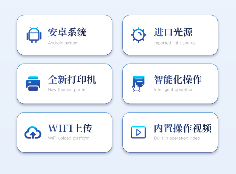 主控芯片采用ARM Cortex-A7,RK3288/4核處理器,主頻1.88Ghz,運(yùn)轉(zhuǎn)速度更快速,穩(wěn)定性更強(qiáng)。顯示方式:7英寸液晶觸摸屏顯示,人性化中文操作界面,讀數(shù)直觀、簡(jiǎn)單。直流12V供電,可連接車載電源,可配6ah大容量充電鋰電池,方便戶外流動(dòng)測(cè)試。雙波長(zhǎng)冷光源,每個(gè)通道均配置405、528nm波長(zhǎng)光源,標(biāo)配**的光路切換裝置,**光路切換功能可實(shí)現(xiàn)*多64波長(zhǎng),并且所有檢測(cè)項(xiàng)目可實(shí)現(xiàn)所有通道同時(shí)檢測(cè)。光源亮度自動(dòng)調(diào)節(jié)與校準(zhǔn)智能恒流穩(wěn)壓,光強(qiáng)自動(dòng)校準(zhǔn),長(zhǎng)時(shí)間連續(xù)工作光源無(wú)溫漂現(xiàn)象。內(nèi)置新國(guó)家限量標(biāo)準(zhǔn),與所測(cè)結(jié)果進(jìn)行現(xiàn)場(chǎng)比對(duì),并持續(xù)更新標(biāo)準(zhǔn)。不間斷進(jìn)樣,連續(xù)檢測(cè)樣本編號(hào)自動(dòng)累加檢測(cè)項(xiàng)目可擴(kuò)充。檢測(cè)結(jié)果可批量打印,批量上傳。檢測(cè)結(jié)果為Excel表格,連接電腦即可拷貝。支持U盤存儲(chǔ),標(biāo)準(zhǔn)USB接口,免驅(qū)動(dòng)安裝。可配置大容量鋰電池,固件可升級(jí)