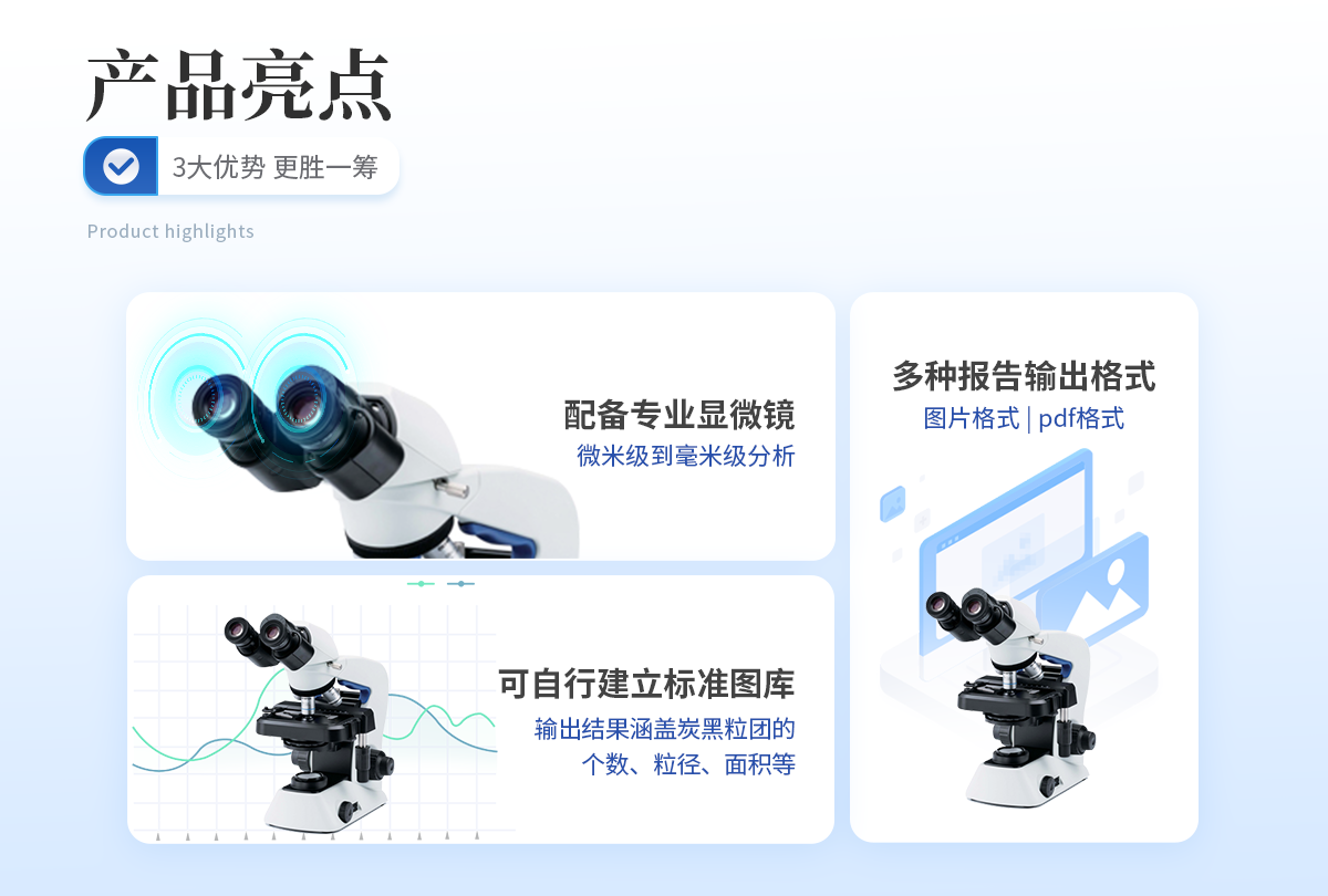 | 1. 采用專業(yè)圖像分析法由計算機完成炭黑分散度等級的判定,檢測精度高; | 2. 對目標炭黑粒徑可從微米級到毫米級進行分析; | 3. 配備專業(yè)顯微鏡,配以500萬CMOS圖像傳輸器; | 4. 可單張保存圖像,圖像大小由640*480,1024*768,1280*1024,2592*1944四種大小可供選擇; | 5. 豐富的圖像處理功能,滿足多種圖像處理需要; | 6. 軟件具有自動和手動兩種方式進行炭黑圖像分割; | 7. 軟件可滿足對局部分析的要求; | 8. 配備測微標尺,可進行像素點尺寸校準,并且軟件具有移動標尺功能,可進行任意兩點距離測量; | 9. 根據橡膠中炭黑種類,建立了由ISO提供的標準圖庫,以滿足客戶的目測對比需求; | 10. 客戶可以自行建立標準圖庫; | 11. 輸出結果涵蓋炭黑粒團的個數、粒徑、面積等,并可以數據報表和excel的形式進行輸出; | 12. 提供圖像灰階分布圖、粒子徑分布圖、粒度分布圖; | 13. 報告結果包括:樣品名、標準名、原始圖像、灰階圖等。報告輸出格式多樣,可以選擇圖片格式或pdf格式進行保存; | 14. 軟件試用各種主流操作系統,與win7/win10/winXP等有很好兼容性; | 15. 采用usb2.0數據接口,可適配多種采集設備(如:攝像頭或數碼相機)。 |