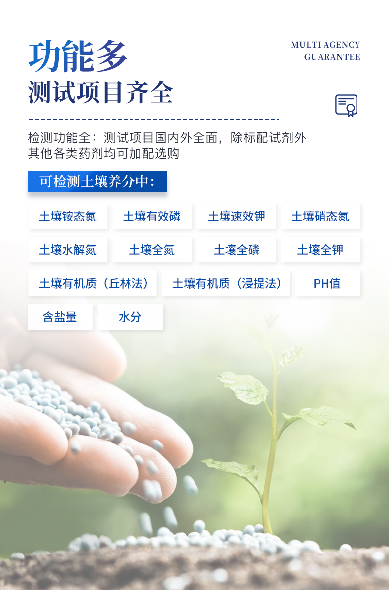 二、臺式土壤養(yǎng)分檢測儀功能多、測試項(xiàng)目齊全: