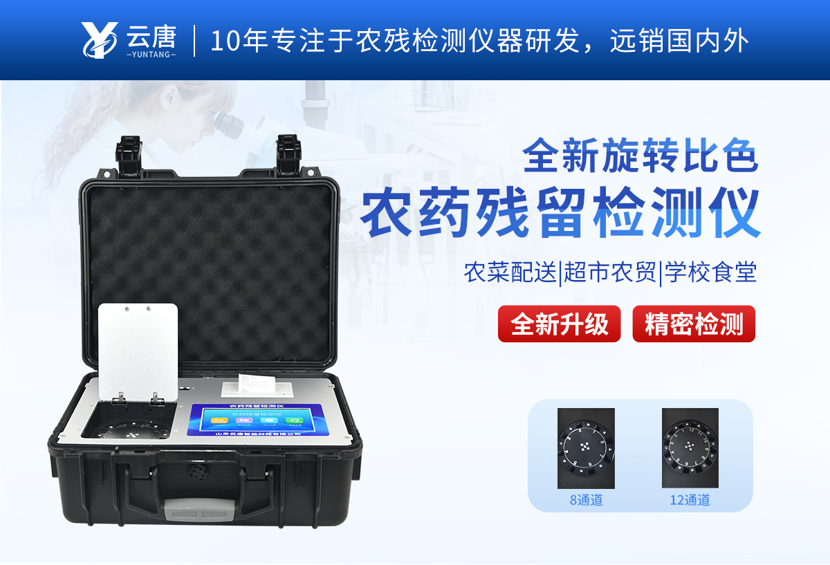 山東云唐智能科技有限公司生產(chǎn)的農(nóng)藥殘留檢測儀廣泛應(yīng)用于主要用于蔬菜、水果、茶葉、糧食、農(nóng)副產(chǎn)品等食品中農(nóng)藥殘留的快速檢測,依據(jù)國標(biāo)GB/T5009.199-2003進(jìn)行檢測,適用于果蔬茶生產(chǎn)基地以及農(nóng)貿(mào)批發(fā)銷售市場現(xiàn)場檢測,餐館、學(xué)校、食堂、家庭果蔬加工前的安全速測等。