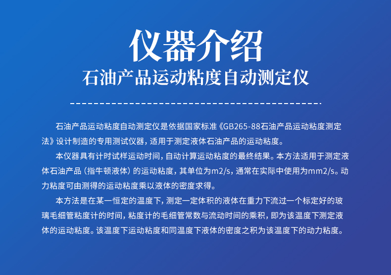 YT-ND石油產(chǎn)品運動粘度自動測定儀是依據(jù)國家標準《GB265-88石油產(chǎn)品運動粘度測定法》設(shè)計制造的專用測試儀器,適用于測定液體石油產(chǎn)品的運動粘度。本儀器具有計時試樣運動時間,自動計算運動粘度的*終結(jié)果。本方法適用于測定液體石油產(chǎn)品(指牛頓液體)的運動粘度,其單位為m2/s,通常在實際中使用為mm2/s。動力粘度可由測得的運動粘度乘以液體的密度求得。本方法是在某一恒定的溫度下,測定一定體積的液體在重力下流過一個標定好的玻璃毛細管粘度計的時間,粘度計的毛細管常數(shù)與流動時間的乘積,即為該溫度下測定液體的運動粘度。該溫度下運動粘度和同溫度下液體的密度之積為該溫度下的動力粘度。