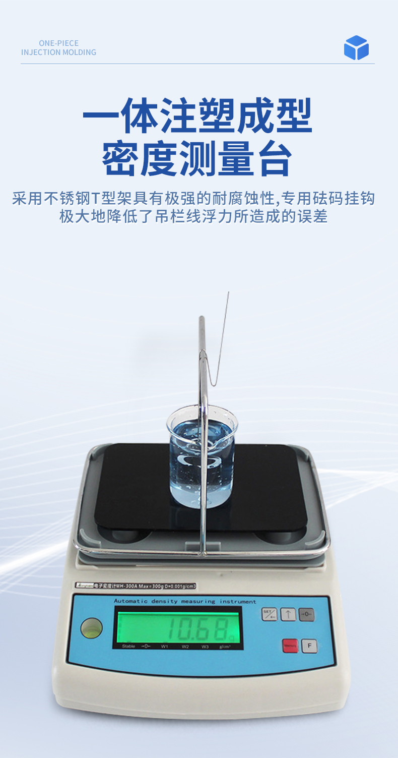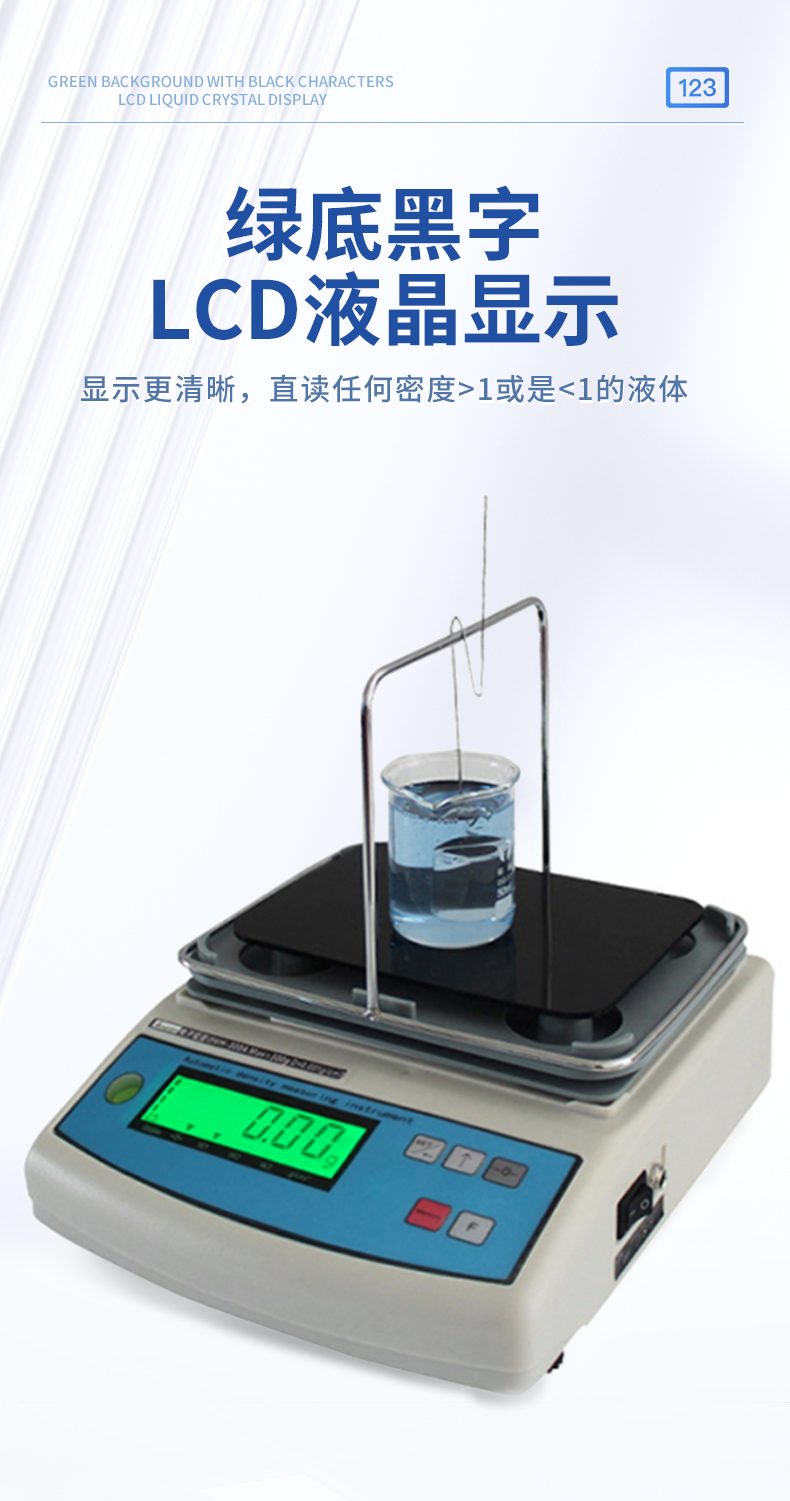 | 1.直讀任何密度>1或是<1的液體. | 2.具有溫度補償設(shè)定、溶液補償設(shè)定功能,更人性化的操作、更符合現(xiàn)場作業(yè)需求 | 3.密度測量臺一體注塑成型,安裝方便快速,使用時間更長. | 4.采用不銹鋼T型架具有極強的耐腐蝕性,專用砝碼掛鉤極大地降低了吊欄線浮力所造成的誤差 | 5.具有密度上、下限功能,可判定待測物的比重合格與否。設(shè)有蜂鳴器裝置 | 6.內(nèi)置蓄電池,選配防風(fēng)罩,更適合現(xiàn)場測試. | 7. 綠底黑字LCD液晶顯示,顯示更清晰 |