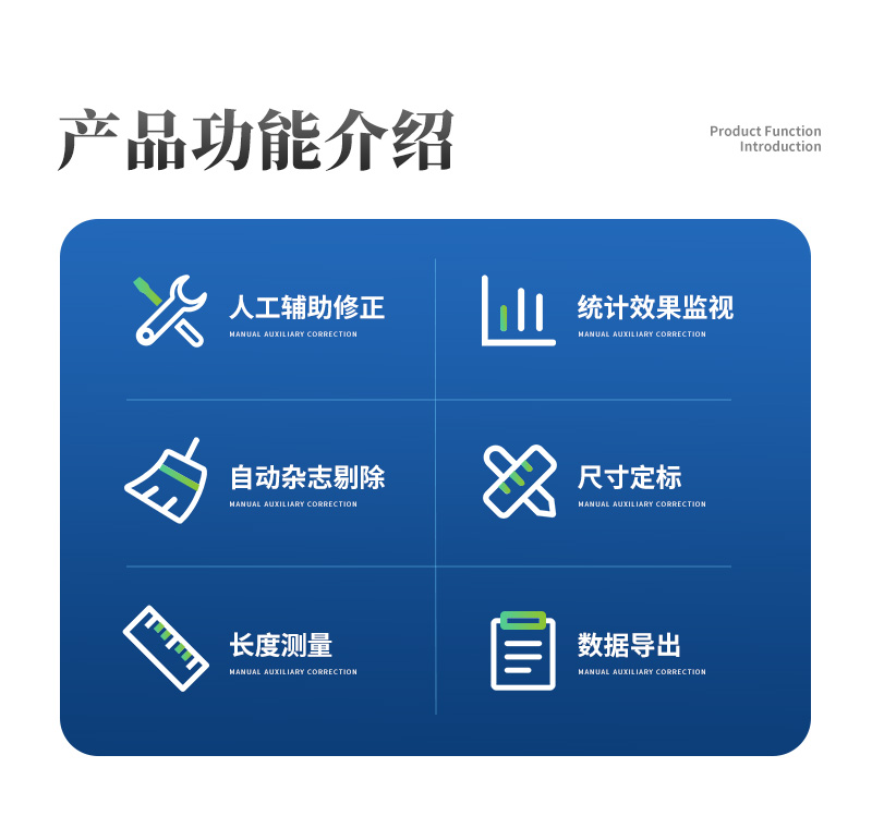 | 1、人工輔助修正:圖像可放大縮小和局部觀察。 | 2、統(tǒng)計效果監(jiān)視:監(jiān)視和修正植物對象分析的精度。 | 3、自動雜質(zhì)剔除:根據(jù)尺寸等方面的區(qū)別,進行自動雜質(zhì)剔除。 | 4、輔助測量功能:尺寸標定:自帶標定功能,實現(xiàn)半自動的尺寸標定,XY向可分別標定修正。 | 長度測量:具有跟隨放大鏡功能,通過鼠標拖動**測量。數(shù)據(jù)導出:分析圖像、分布圖、結(jié)果數(shù)據(jù)可保存,分析結(jié)果輸出至Excel表,可輸出分析標記圖。 |